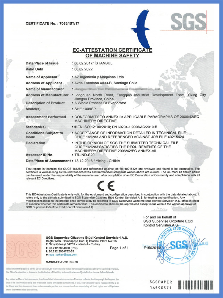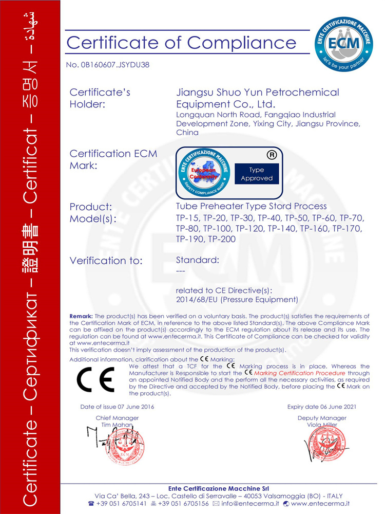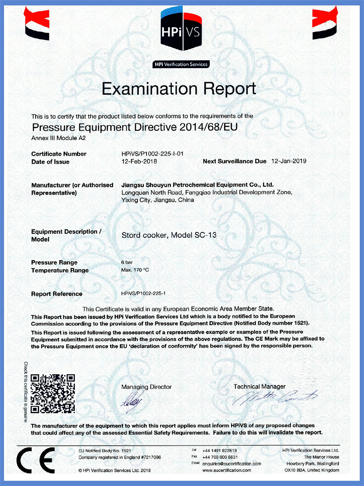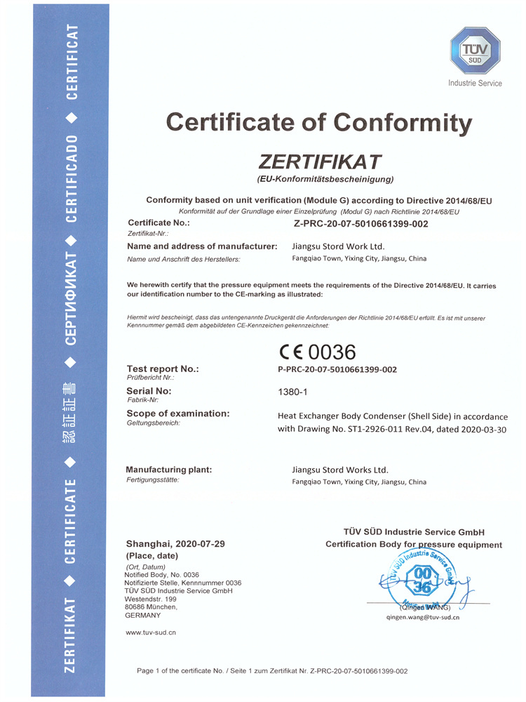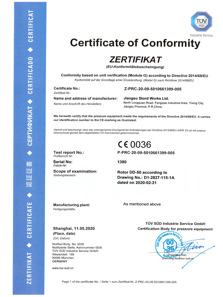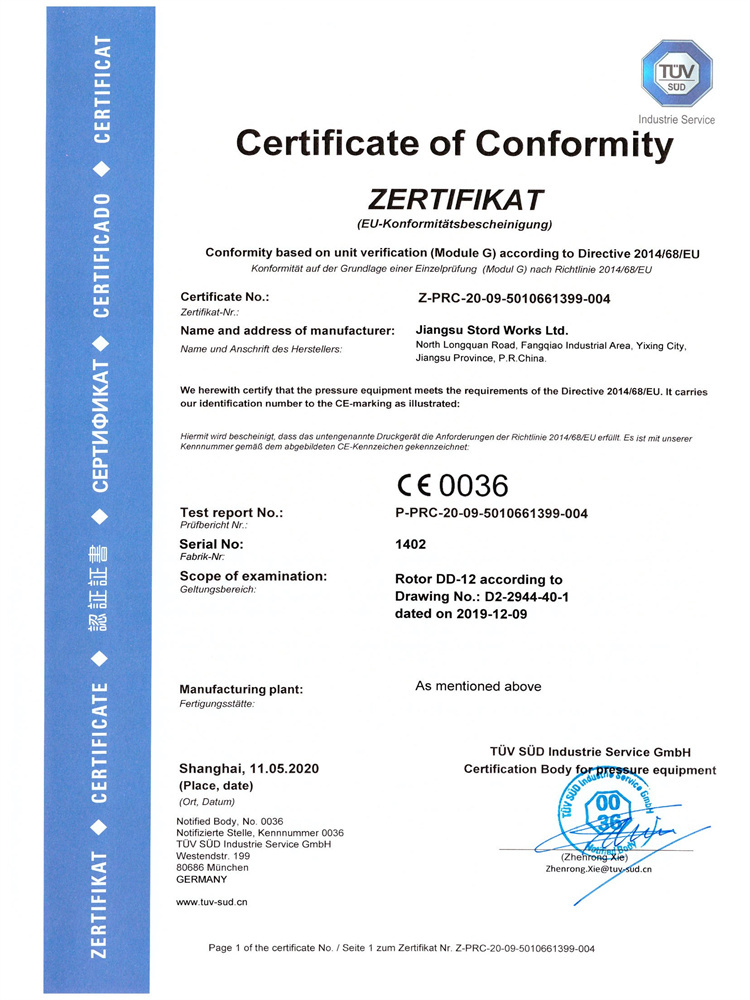 TST 5-8 圓盤干燥機(jī) PED Model G證書